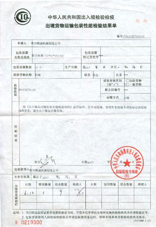 我公司烘干機(jī),熱風(fēng)循環(huán)干燥箱,藥品包裝機(jī)等制藥機(jī)械設(shè)備出口美國(guó)(出境貨物檢驗(yàn)檢疫單) 0 本文被閱讀 2435 次