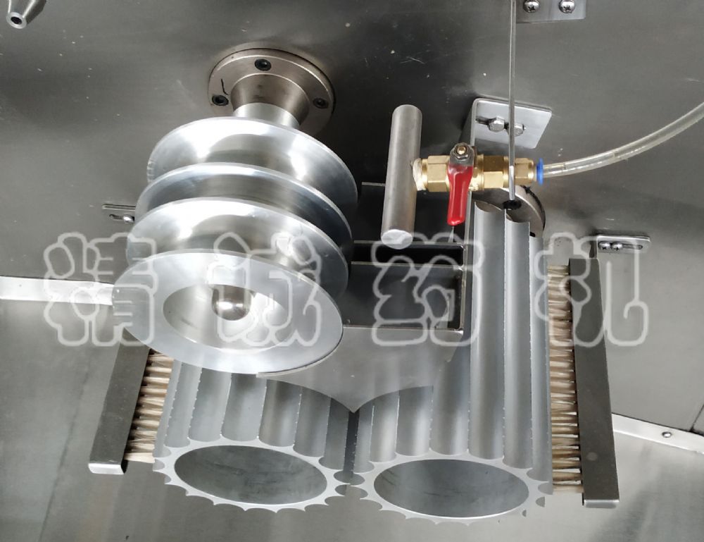 5、用酒精點滴藥條,制丸刀外側(cè)裝有毛刷,可解決粘刀現(xiàn)象,酒精裝在出條機構(gòu)的方箱內(nèi),通過球閥調(diào)節(jié)酒精量的大小。