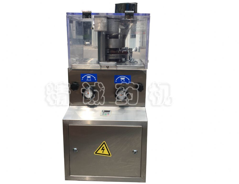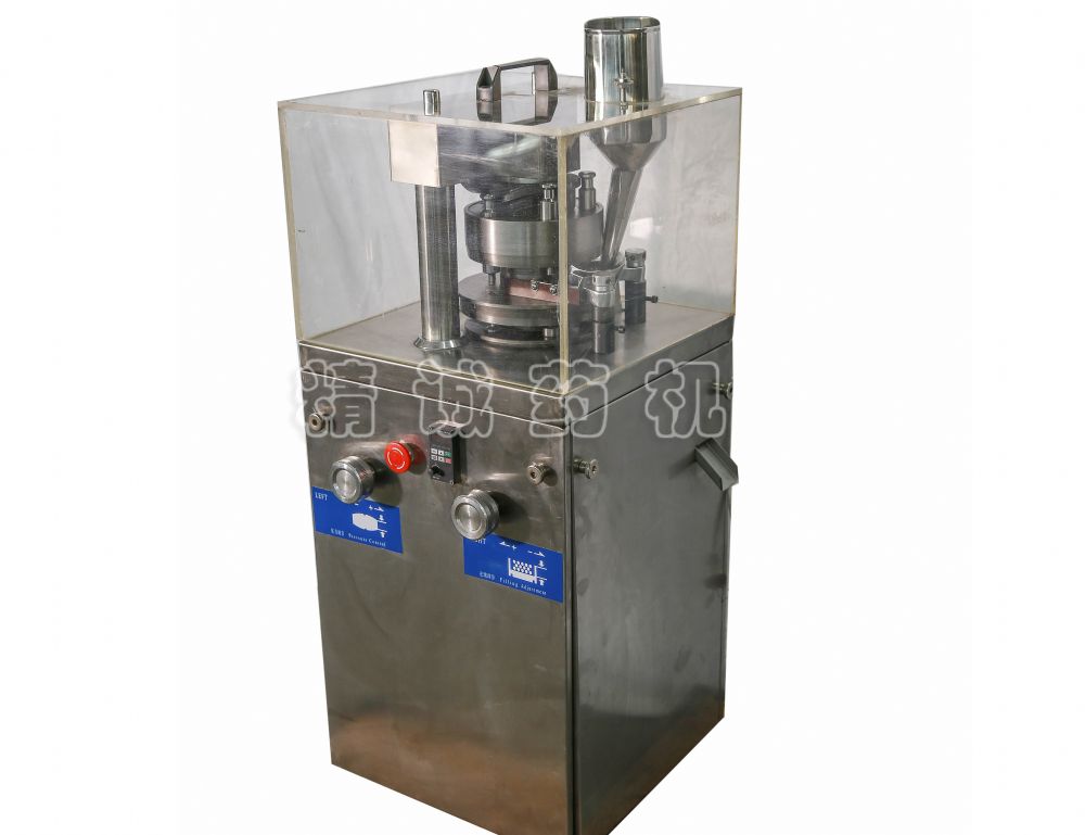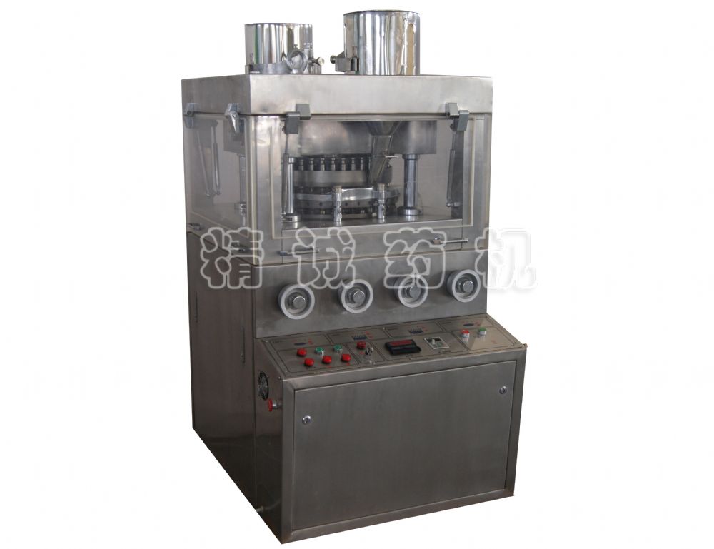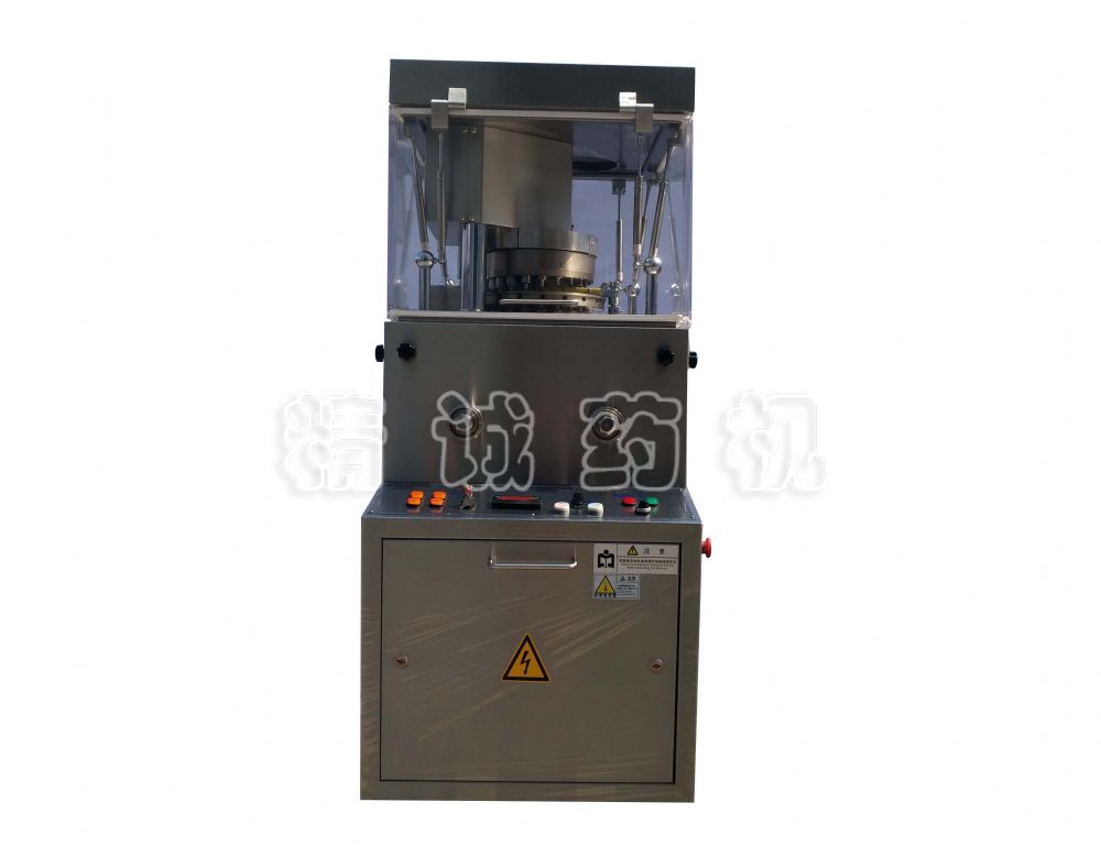 ZP5A、ZP7A、ZP9A主要用于將顆粒狀物料自動連續(xù)壓制成直徑不大于13mm的圓形,異形和帶有文字、符號、圖形片狀物。壓制片狀物料為含粉量不超過10%的顆粒。本機不適用于半固體,潮濕顆粒、低熔點易吸濕原料和無顆粒的粉末壓片。ZP17A、ZP19A、ZP33A用于壓制圓片。壓片時轉(zhuǎn)盤速度、物料充填深度,壓片厚度均可調(diào)節(jié)。機上的機械緩沖裝置可避免過載而引起的機件損壞。機體一側(cè)配有吸粉箱通過吸咀可吸取機器運轉(zhuǎn)時產(chǎn)生的粉塵,避免粘結(jié)堵塞,并可回收原料重新使用。ZP17A、ZP19A可壓制各種幾何形狀的異形片。ZP33結(jié)構(gòu)為雙壓式,有兩種加料裝置和兩套壓輪。轉(zhuǎn)盤上可裝33付沖模旋轉(zhuǎn)一周即可壓制66片。ZP17D、ZP17A、ZP29、ZP31可壓制普通圓片和各種異形片,外圍罩殼為全封閉式,材料采用不銹鋼,能防止交叉污染符合GMP標(biāo)準(zhǔn),裝有透明玻璃的明窗,能清楚觀察壓片的狀態(tài),并且能全部打開,易于內(nèi)部清理和保養(yǎng)。